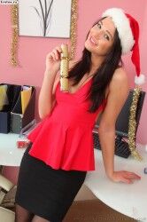 Снегурочка в черных чулках задирает юбочку и показывает спелую попу |