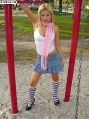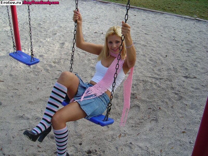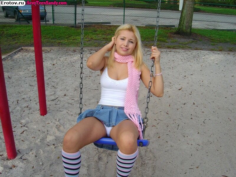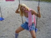 Студентка в мини юбке задирает попу на игровой площадке |