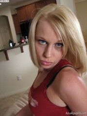Молодая блондинка показывает розовые трусы под джинсовой юбкой |