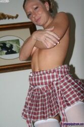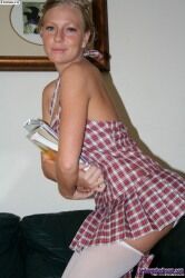 Попастая студентка в белых чулках раздвигает ноги |