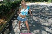 Эротичная студентка в белых трусиках задирает юбку |