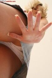 У девушки в джинсовой юбке видно трусы между ног |